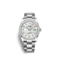 • Rolex Datejust 36 Oystersteel or blanc 18 ct M126284RBR-0012 Nacre blanche sertie de diamants Cadran
